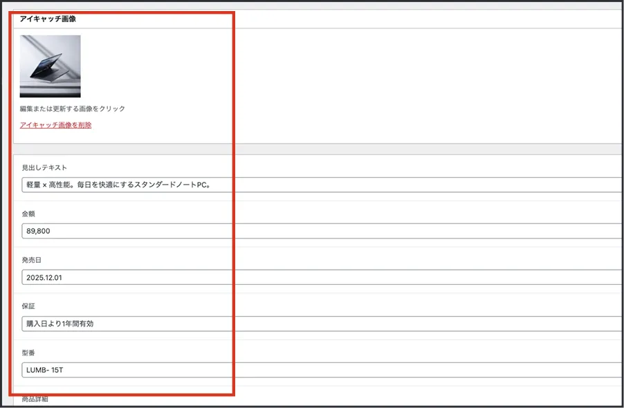 管理画面で入力した内容が、自動で一覧ページ・詳細ページに反映されます。